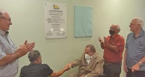 O ex-presidente Luiz Eugênio Ferro Arnoni e seus diretores Paulinho Rodrigues, Aurino Magalhães da Rocha Júnior e Domingos Baú descerraram as placas de revitalização do auditório e salão de festas da Canasol, construídas durante o período em que foram diretores da associação.