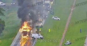 Por horas o tráfego de veículos ficou congestionado na Washington Luís, em Araraquara, nesta segunda-feira. O fato se deu por causa do incêndio em uma carreta que transportava etanol e seguia em direção à Paulínia. O motorista de um Corsa ficou ferido e levado para atendimento na Santa Casa.