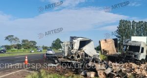 Acidente entre dois caminhões na Rodovia Washington Luís em Ibaté tem...