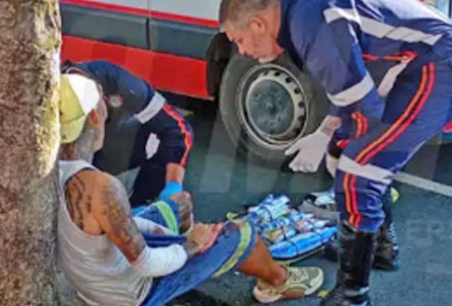 Os primeiros atendimentos foram dados por uma equipe do SAMU ao trabalhador (Foto: Fala Matão)
