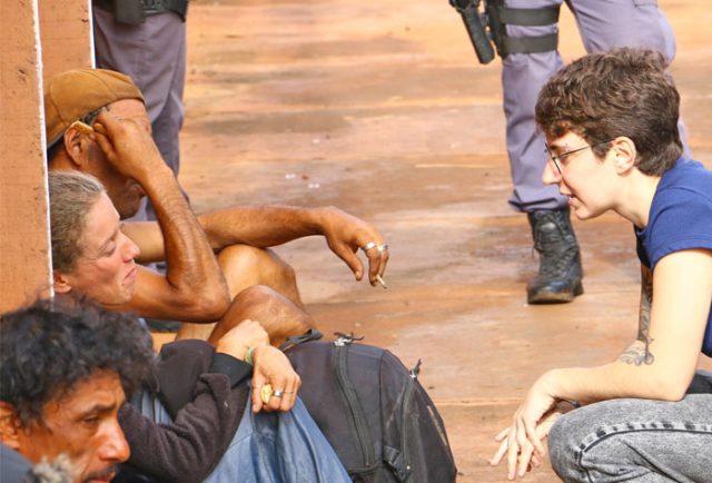 A primeira abordagem foi realizada pela GCM e pela Polícia Militar, com o objetivo de verificar possíveis situações criminais, identificar os indivíduos presentes e assegurar a integridade de todos os envolvidos, além de permitir a continuidade segura dos trabalhos no local.