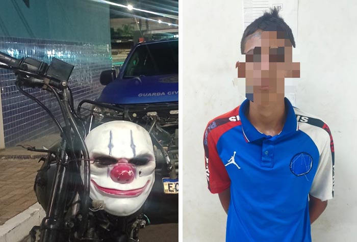 O Grupo de Apoio Tático (GAT) da Guarda Municipal realizava apoio ao Inspetor VTR 1099 e à equipe VTR 1071, para a segurança do cumprimento de medidas administrativas de recolha ao pátio de motocicletas, pela Rua Maurício Galli, nº 4528, quando a equipe flagrou uma motocicleta de cor preta transitando pela via em alta velocidade, ostentando uma máscara de palhaço no local do farol dianteiro, conduzida por dois indivíduos sem capacete, além de possuir escapamento em descarga livre, produzindo ruídos semelhantes a disparos de arma de fogo, causando alarde e perturbação da ordem pública.
