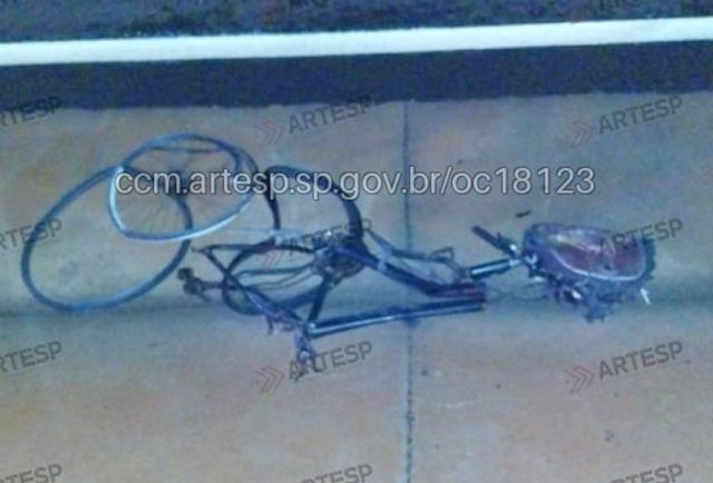 Bicicleta ficou totalmente destroçada dada a violência da colisão