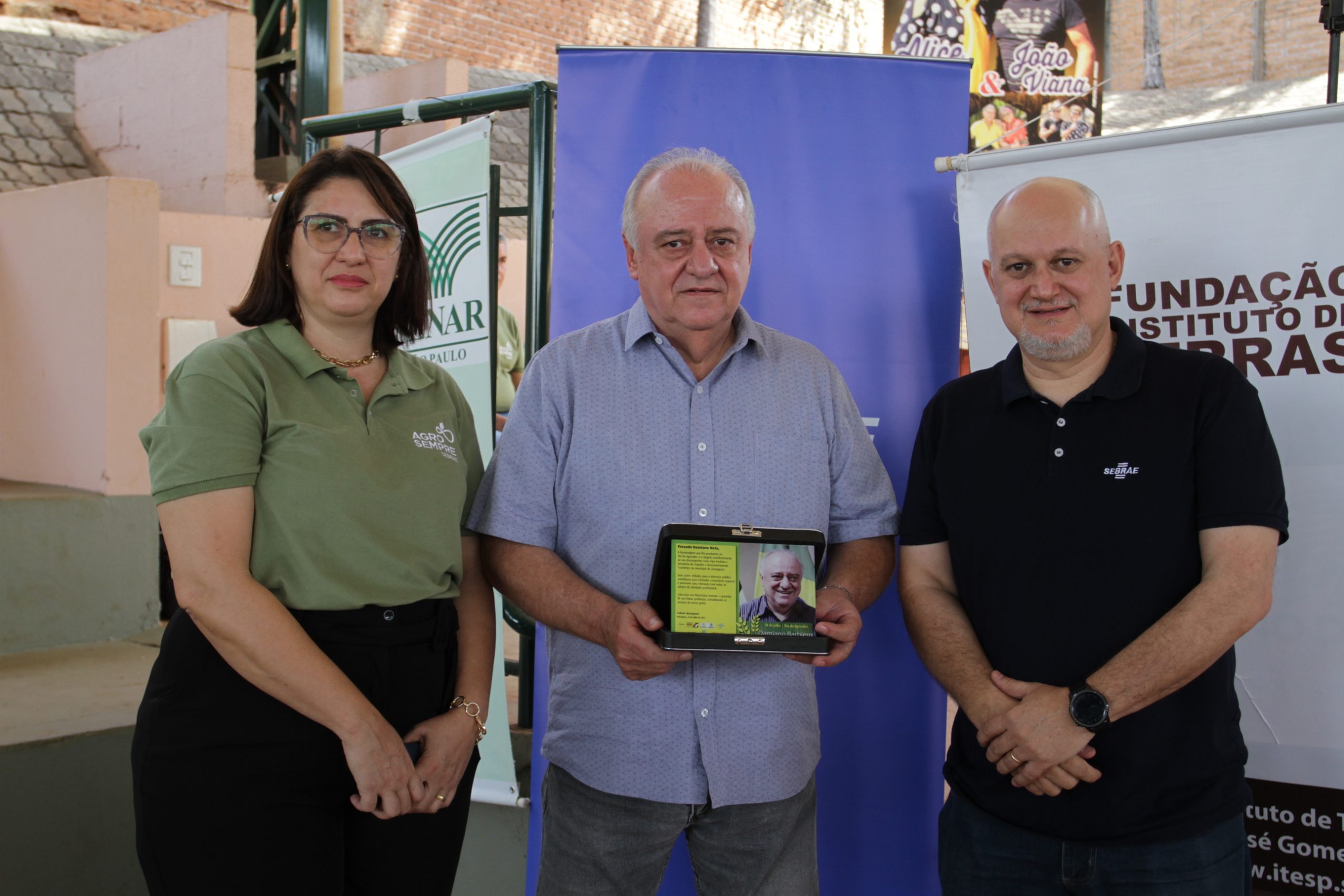 No cartão entregue a Damiano Neto, o Sebrae expressa o respeito e a gratidão pelo apoio que Damiano tem dado ao órgão e as empresas da cidade: “Prezado Damiano Neto, a homenagem que lhe prestamos no Dia do Agricultor é o singelo reconhecimento ao seu desempenho como Vice-Prefeito e Secretário do Trabalho e Desenvolvimento Econômico no município de Araraquara.