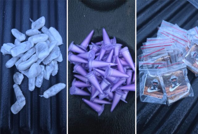 As drogas apreendidas pelos guardas civis durante patrulhamento