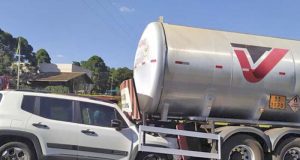 Trânsito estava lento pelo local, devido às obras de recapeamento em uma das faixas. O motorista brecou e o Jeep que vinha em seguida bateu na sua traseira.