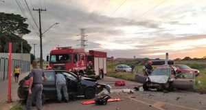 Acidente mobilizou vários socorristas do Samu e Corpo de Bombeiros. As vítimas foram levadas para atendimento em hospital no município.
