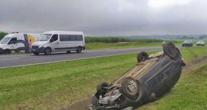Enfermeira perde controle e carro capota na Rodovia Washington Luís