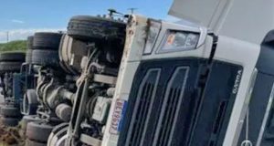 Caminhão transportando chapas de aço tomba na Rodovia Washington Luís