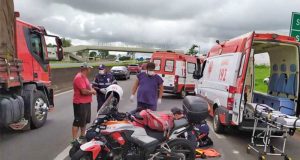 Um cachorro corria pela faixa da esquerda da pista e motorista diminuiu a velocidade para acompanhar o animal; motociclista vinha atrás e não teve tempo de frear.