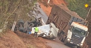Três pessoas estavam no caminhão; duas ficaram feridas, sendo levadas para hospital da região
