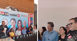 Ao lado de Haddad estavam Geraldo Alckmin (PSB), candidato a vice-presidente de Lula e Márcio França (PSB) que é candidato ao Senado pelo PSB, bem como o prefeito Edinho Silva.