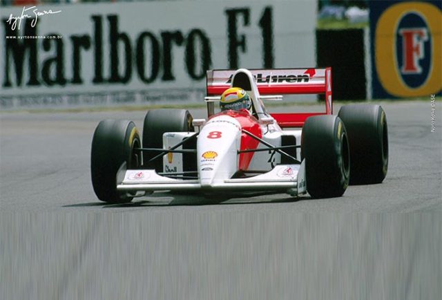 Senna acelerava o McLaren MP4/8 pela primeira vez em Silverstone