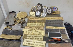 Após encher a sacola com porta-retratos, placas de identificação extraídas dos túmulos, imagens religiosas, o ladrão estava saindo para encontrar com o comparsa que se encontrava do lado de fora do Cemitério São Bento. Foram presos e levados ao Plantão Policial.